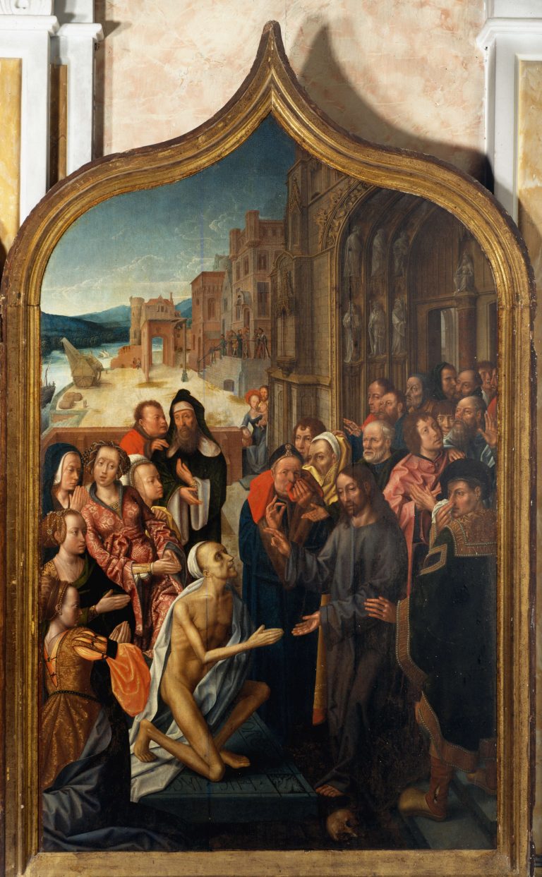 Andrea Costa, nato nel borgo di San Lorenzo e signore di Roccarbino nel Principato di Monaco, si era trasferito a Bruges per ragioni commerciali legate al traffico dell’allume di rocca, materiale fondamentale per la concia delle pelli e la tintura dei tessuti. Dal 1483 documentato nella città fiamminga, nel 1492 sposò Agnese, con la quale ebbe tredici figli. Divenuto figura di spicco della vita socio-economica locale — consigliere, ricevitore delle imposte e poi ambasciatore dell’imperatore Massimiliano – volle lasciare un segno tangibile della sua ascesa nel luogo di nascita, finanziando – con il supporto del sacerdote Lorenzo – la costruzione di una cappella dedicata al suo santo patrono e dotandola dell’opportuna immagine sacra.