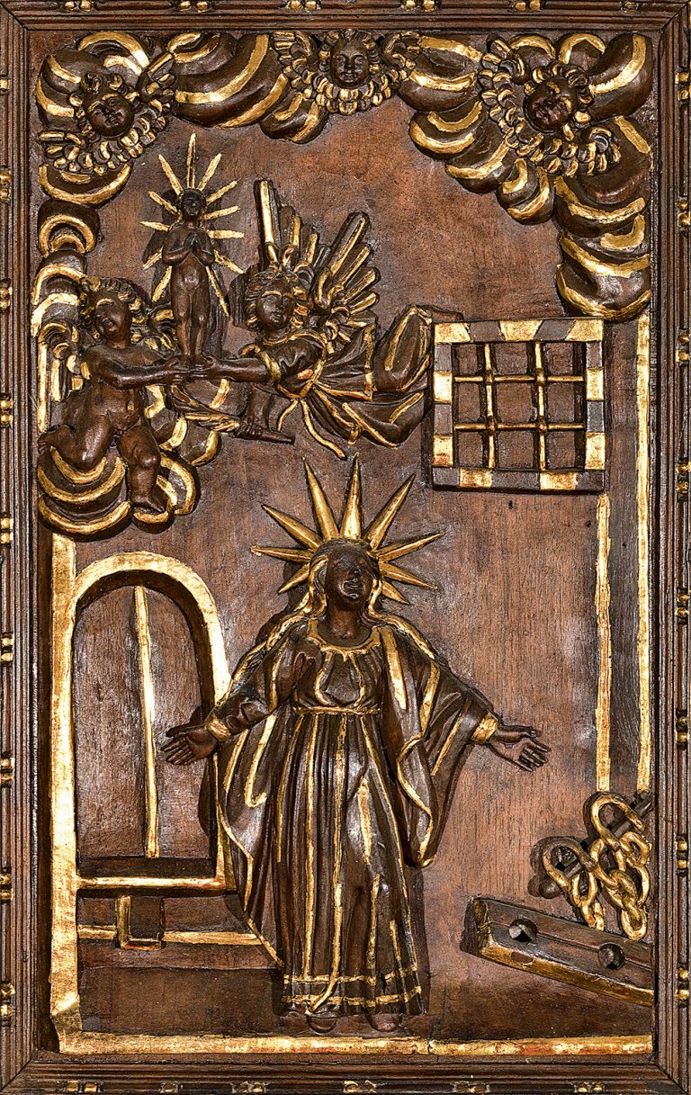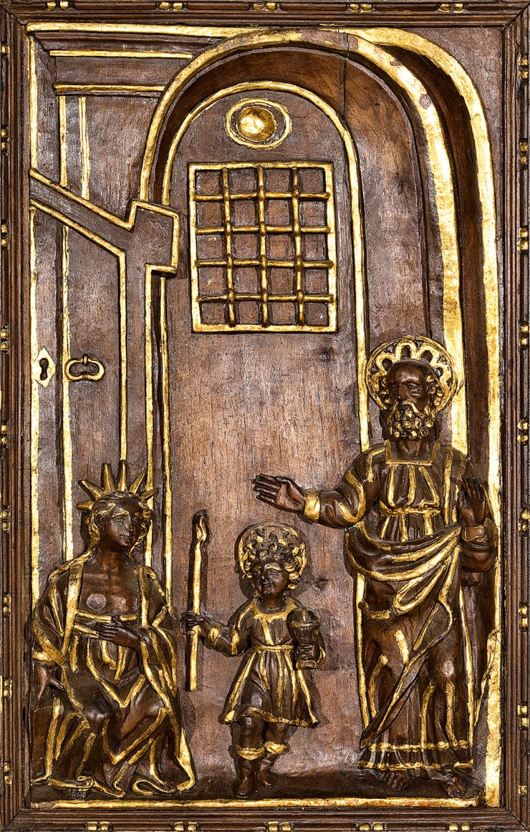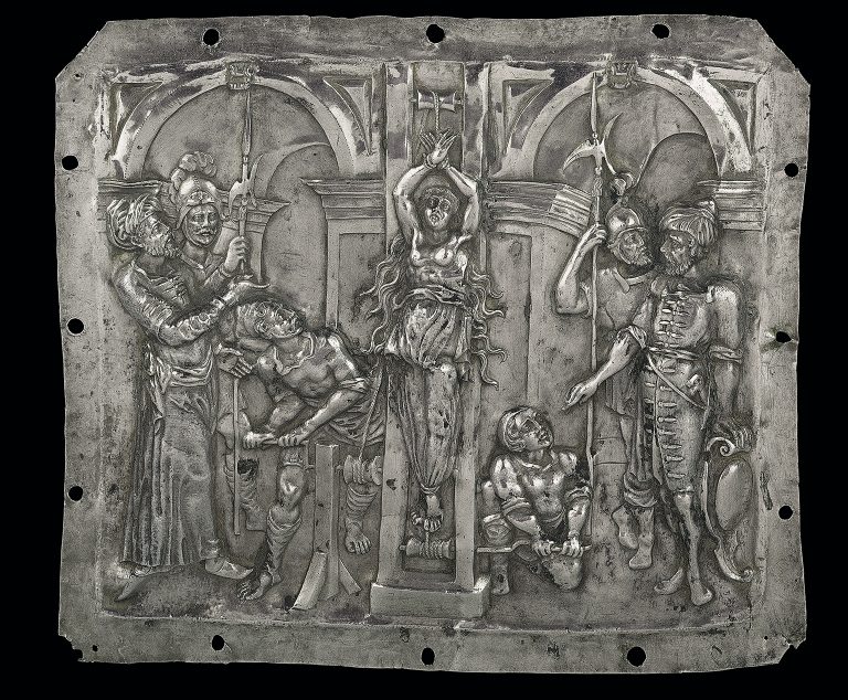 In epoca medievale sono stati rappresentati particolarmente i due episodi successivi del martirio della Vergine di Catania: anzitutto la torsione dei seni, poi la loro recisione con un oggetto affilato. Fra le rappresentazioni della torsione c’è un’interessantissima miniatura in un salterio a uso di Reims conservato nella Biblioteca comunale di Carpentras (seconda metà XIII secolo): la Santa, per metà svestita e legata, viene torturata da due uomini, ciascuno dei quali maneggia lo strumento del supplizio formato da una lunga corda manovrata con un legno per torcerle il seno. Negli altri riquadri sono raffigurate le martiri Caterina, Lucia e Margherita, associate ai rispettivi strumenti delle sevizie loro inflitte. L’episodio della torsione riferito dalla Legenda agiografica di Agata è rappresentato anche nella parte inferiore del suo Reliquiario a busto (Giovanni di Bartolo). In questa celebre opera la scena della tortura della Santa per mano di due carnefici è riprodotta sul grande quadrifoglio a punta, arricchito di smalto traslucido su basso rilievo, collocato sotto una delle due mensole a sbalzo che sorreggono i due angeli inginocchiati accanto a lei. Anche in questo caso, la presenza dello stesso tipo di strumenti di tortura già citati indica che lo smaltatore ha preferito rappresentare la prima sentenza del console di Sicilia. Inoltre, così come nel salterio di Carprentas, Agata è in genere associata a due altre figure di sante importanti del calendario cristiano: Caterina d’Alessandria e Lucia di Siracusa. Queste, infatti, con gli attibuti del loro martirio (rispettivamente la ruota, e la spada assieme alla coppa che contiene gli occhi cavati) sono rappresentate in due placchette a profilo mistilineo fissate alla base dell’opera orafa del Di Bartolo.