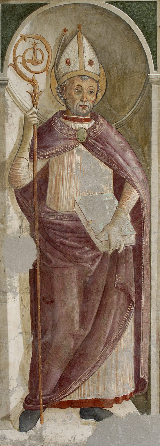 La colonna del Salvatore. Sopra la porta della cappella, dentro una cornice ovale, si trovava un segmento della colonna (in origine vicina alla porta) che fu asportato insieme all’immagine dell’Ecce Homo ivi dipinta, in seguito ad un prodigio straordinario tramandatoci da Niccolò Della Tuccia: nel 1442 “Un ribaldo barattiere, narrava il cronista, con un coltello diè nella gola ad un Salvatore che sta dipinto in una colonna dentro S. Lorenzo e subito n’uscia sangue vivo a colui fuggì a Vallerano e tutte le membra se gli spalparono e non pole morire finchè non confessò il peccato” [D. Tuccia, p. 51 – che riferisce il fatto al 1443, ma risulta che fin dall’ano inanzi facevansi rilevanti oblazioni all’altare del SS. Salvatore][Signorelli].