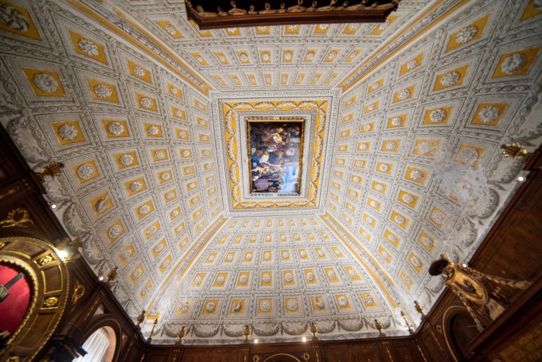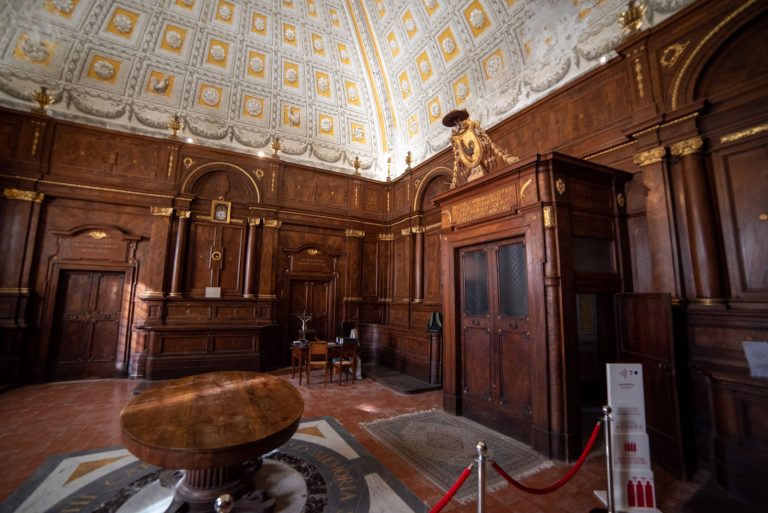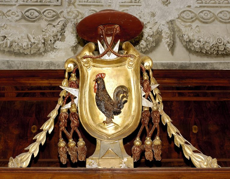 Sul pavimento lo stemma del card. Gallo. Entro un quadrato in marmo grigio, si iscrive un cerchio sul quale corre una iscrizione. All’interno del cerchio compare lo stemma del cardinale.