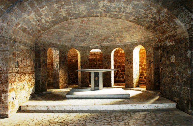 Il tempietto è simile come orientamento e come forma, a quello di Gerusalemme e custodisce nel tabernacolo pietre trasportate dal pretorio di Pilato, bagnate del sangue di Cristo e qui incastonate in mezzo a due pietre più grandi.