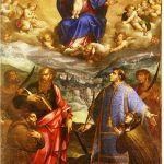 Agli anni intorno al Giubileo del 1600 risale la pala d’altare, posta in origine sull’altare maggiore della chiesa cappuccina della Palanzana, dipinta nel 1593 da Durante Alberti e raffigurante la Madonna col Bambino e i santi dell’Ordine francescano. La formula iconografica riprende un modello fondamentale della Controriforma, “la fervida comunità dei credenti che adora il manifestarsi della Vergine con il Figlio” ma la comunità è, nella fattispecie, quella francescana, in cui il pittore devoto sottolinea l’imponente servizio alla Chiesa militante.
