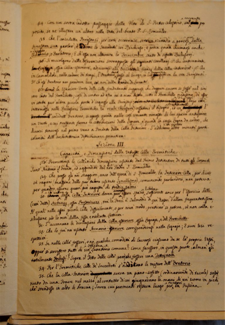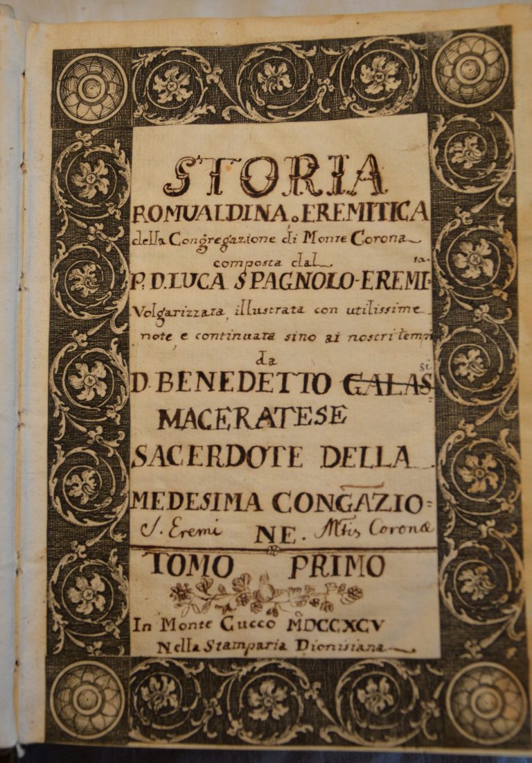 Don Filippo Palmieri z Barchi (1762–1827) od pierwszych lat XIX wieku pełnił funkcję historyka Eremu, a ponadto podjął się transkrypcji rękopisów błogosławionego Pawła Giustinianiego. Było to konieczne ze względu na trudność ich zrozumienia, wynikającą nie tyle z pisma błogosławionego, ile z używanej przez niego gramatyki i składni, co czyniło lekturę jego tekstów praktycznie niemożliwą dla ówczesnych mnichów.