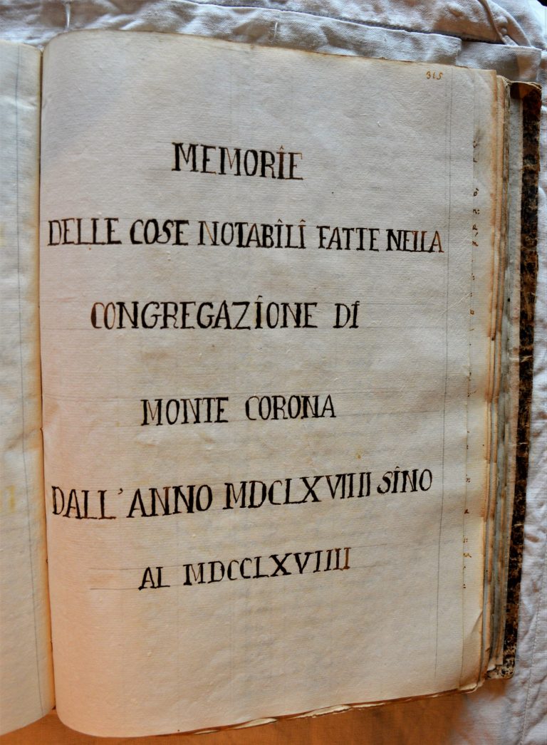 Di seguito alla soppressione dell’Eremo di Monte Corona nel 1861, vi confluiranno anche i manoscritti del beato Paolo Giustiniani; l’Archivio del Venerabile Tribunale (comprendente anche gli Atti dei Capitoli generali della Congregazione); l’Archivio di Monte Corona (PG), e infine gli archivi più o meno completi di alcuni eremi italiani soppressi (Monte Giove, Fano, Todi, Avvocata, Grotte del Massaccio e altri).