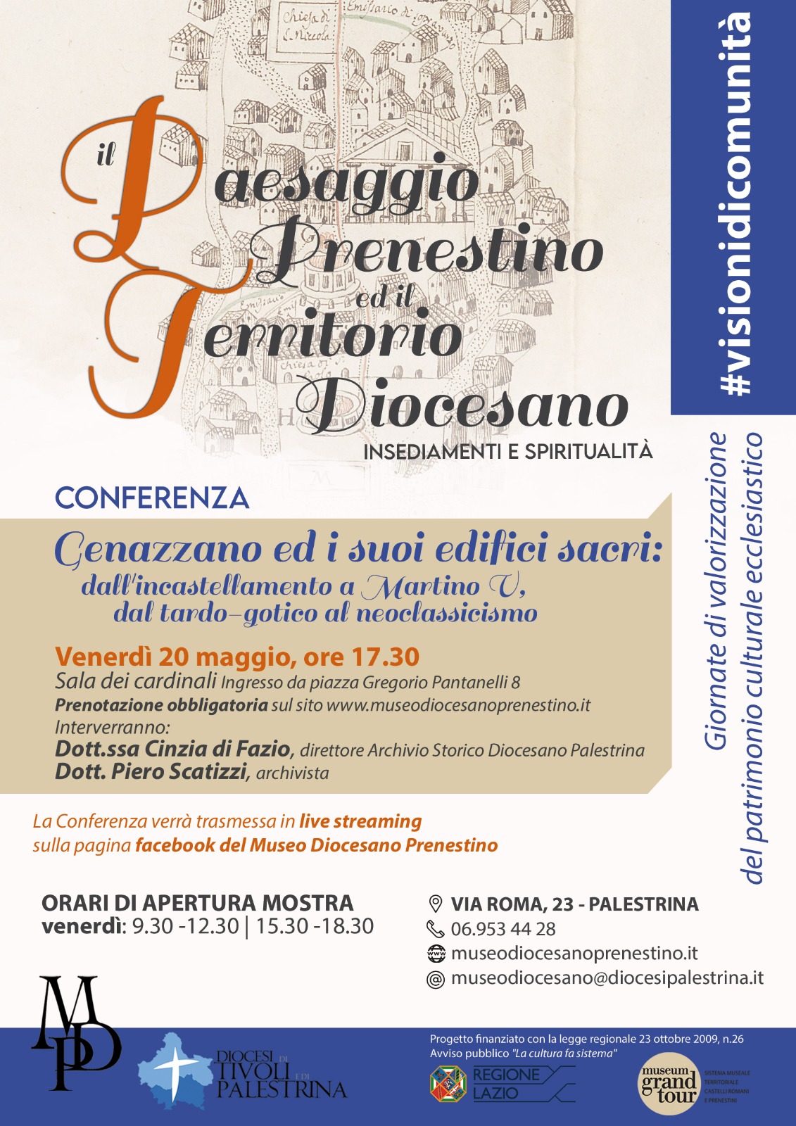 A Palestrina il prossimo 20 maggio l'Archivio Storico, la Biblioteca Diocesana ed il Museo Diocesano Prenestino di arte sacra partecipano all'edizione 2022 delle Giornate di valorizzazione del patrimonio culturale ecclesiastico #visionidicomunità con una conferenza e una visita guidata.