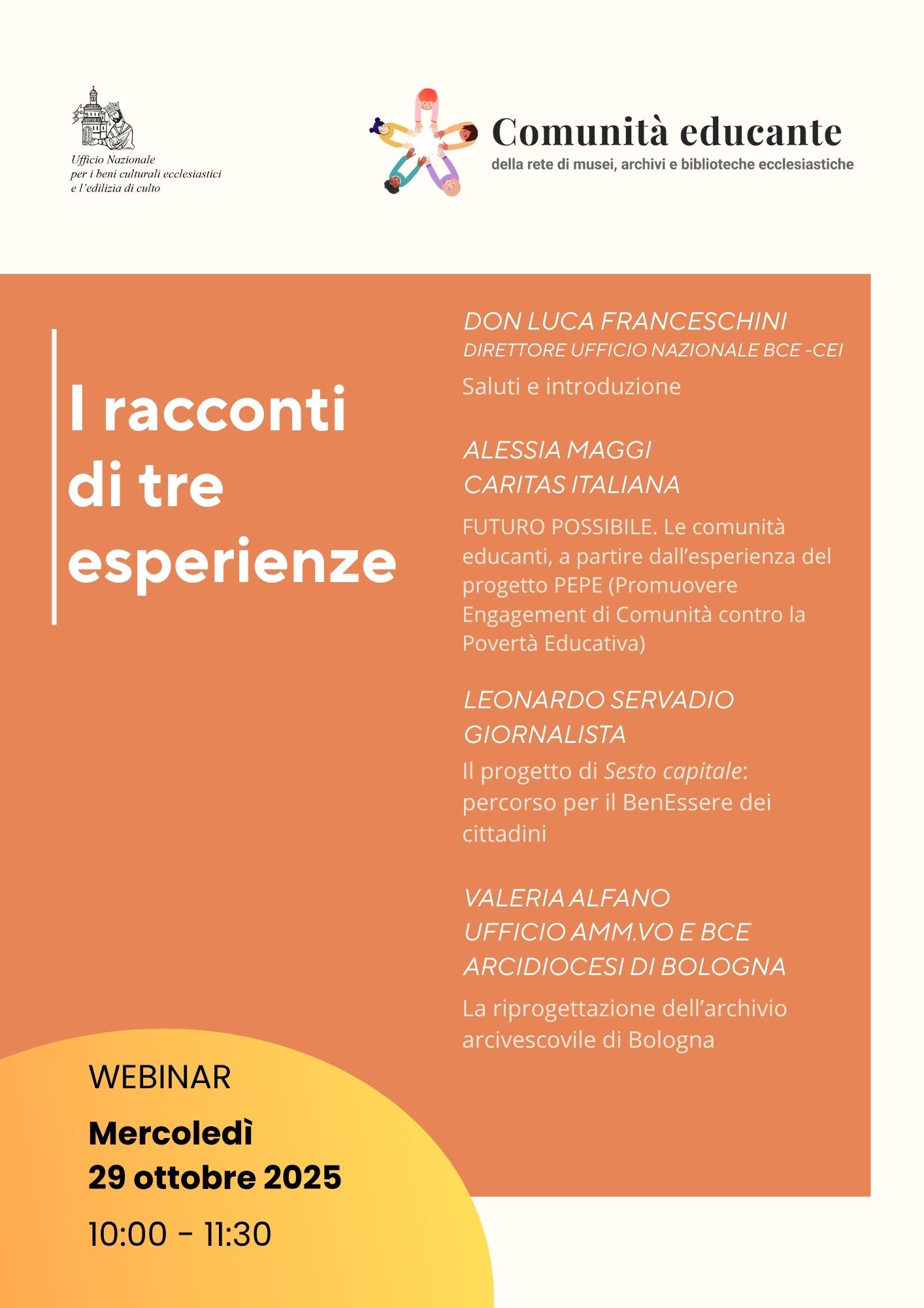 Mercoledì 29 ottobre 2025 si terrà il quinto incontro della Comunità educante della rete di musei, archivi e biblioteche ecclesiastiche.