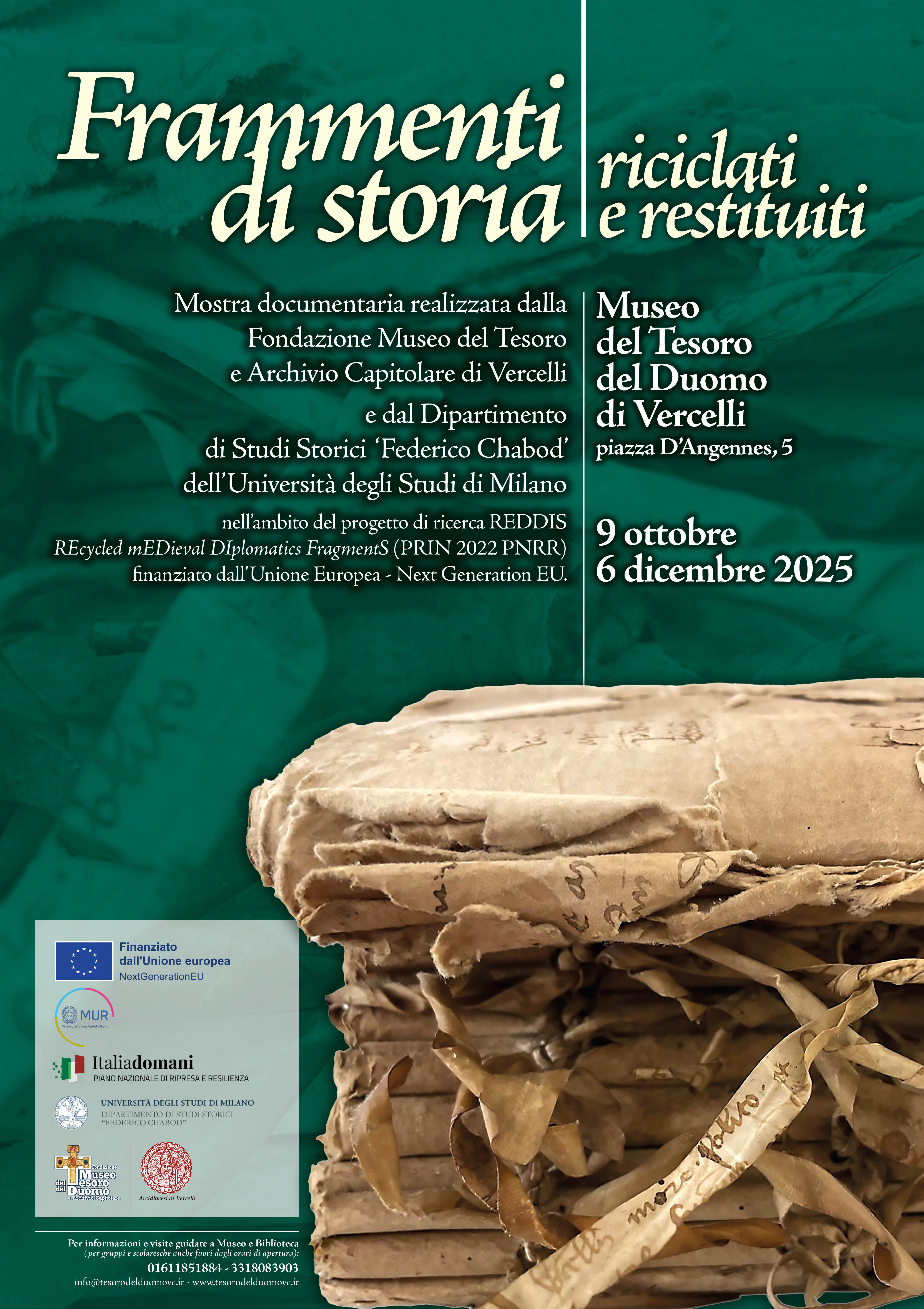 Frammenti di storia riciclati e restituiti è l'esposizione temporanea collaterale al progetto REDDIS - REcycled mEDieval DIplmatic FragmentS finanziato dall'Unione Europea (PRIN 2022 - PNRR Next Generation EU), visitabile dal 9 ottobre al 6 dicembre 2025 presso il Museo del Tesoro del Duomo di Vercelli, organizzata da Biblioteca e Archivio Capitolare con il Dipartimento di Studi Storici dell'Università degli Studi di Milano, in collaborazione con Arcidiocesi di Vercelli.