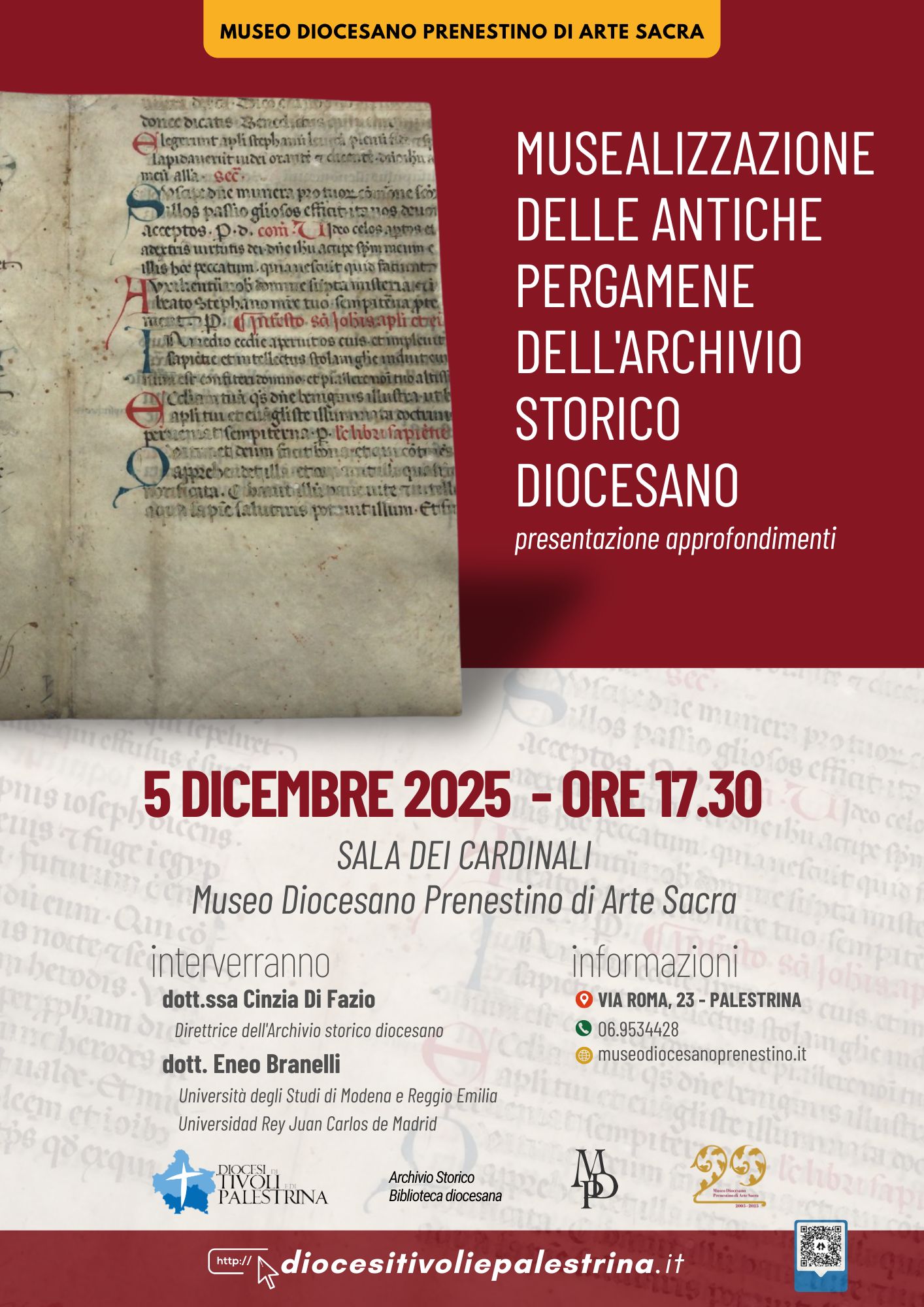 Archivio storico diocesano di Palestrina (Palestrina), Biblioteca diocesana di Palestrina (Palestrina), Museo diocesano prenestino di arte sacra (Palestrina), 05/12/2025 dalle 00:00